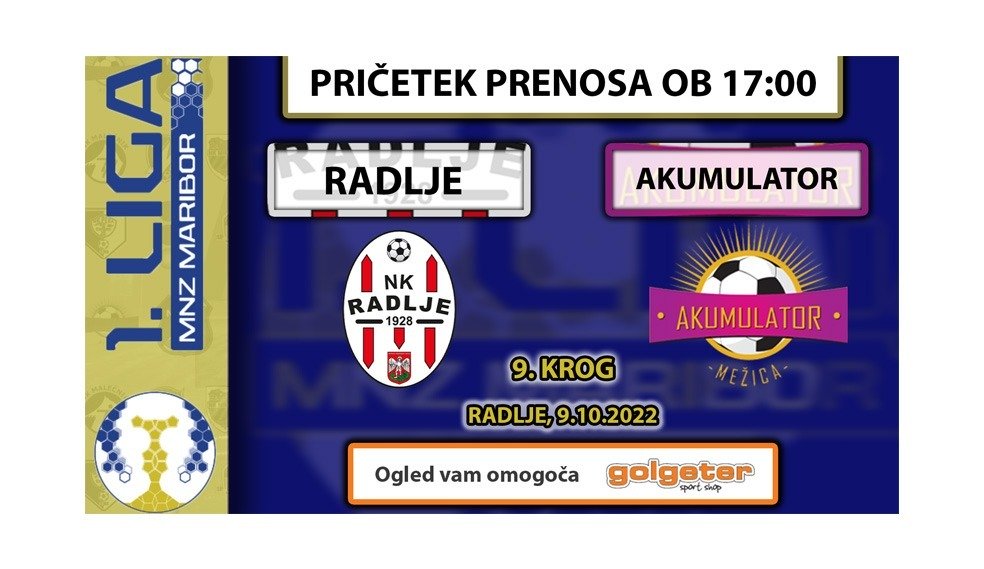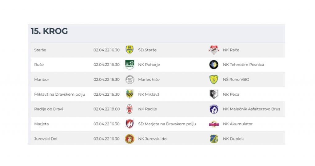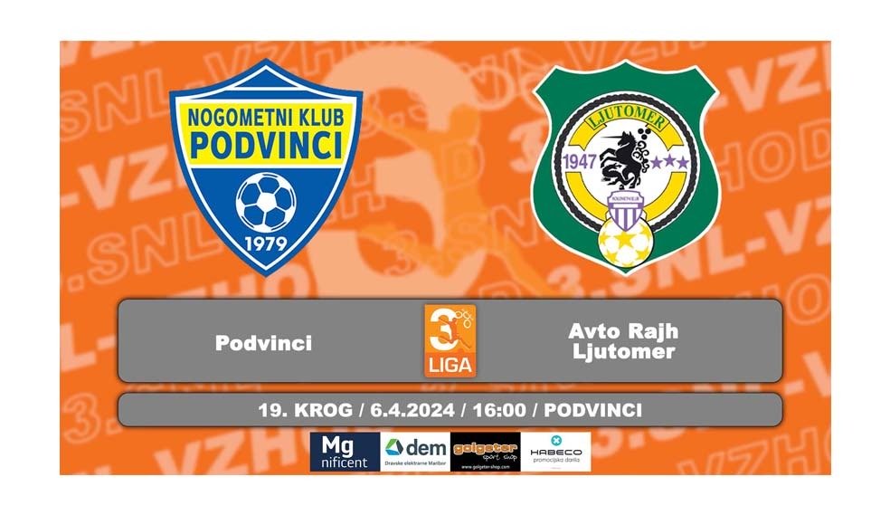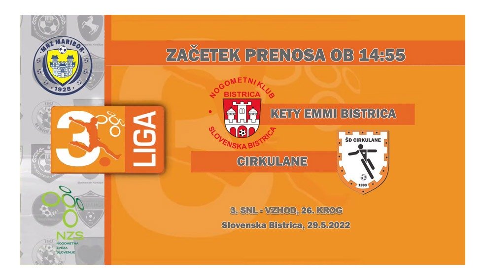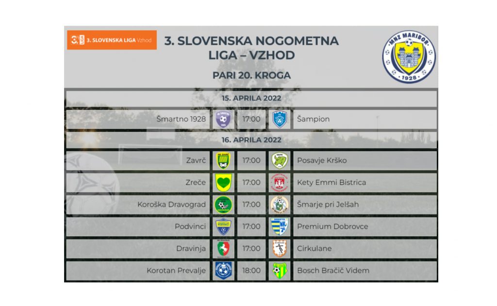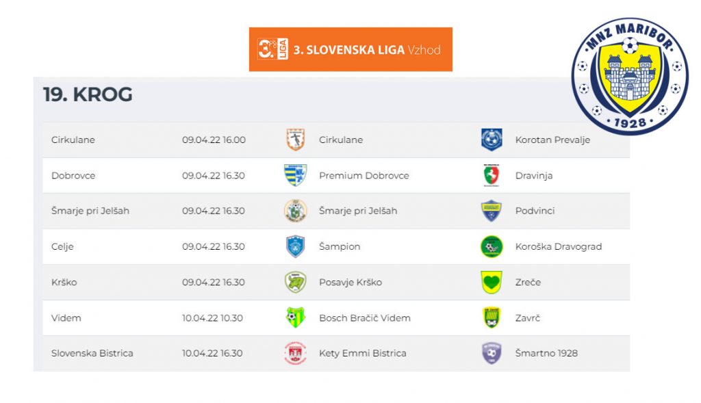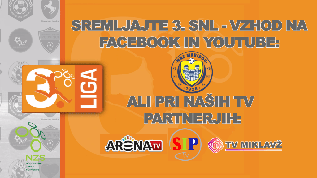 3. SNL – vzhod Korotan – Hajdina https://www.youtube.com/live/_dWZxZ5ZHFc?feature=share Brežice 1919 – Krško Posavje Brežice 1919 Terme Čatež – Krško Posavje – YouTube Golgeter Premium Liga MNZ Maribor: Pohorje – Tehnotim Pesnica Pohorje – Tehnotim Pesnica – YouTube Dravograd – Rače* tekma bo v posnetku na VEO platformi Peca – Novogradnje Maribor Tabor https://www.youtube.com/live/osAC9lTOfHI?feature=share Marles –…