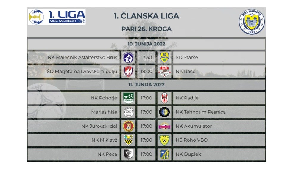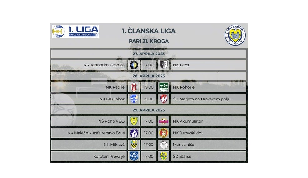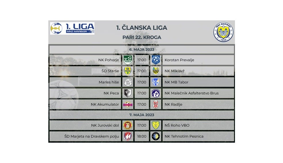 Napovednik zadnjega 22. kroga v Golgeter Premium Ligi MNZ Maribor