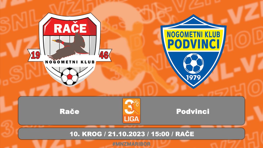Tekma 6. kroga 1. MNZ Maribor med NK Pesnica in NK Rače. Rezultati in lestvica 1. MNZ Maribor https://mnzmaribor.si/tekmovanje/1-clanska-liga-20-21/