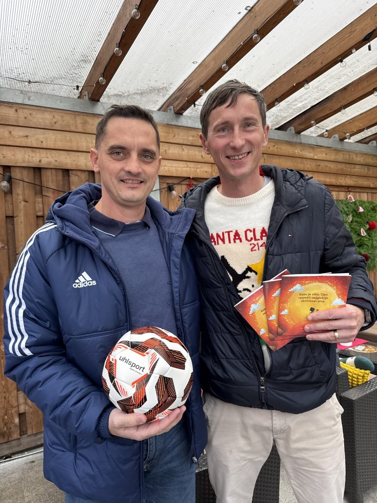 Dejan Germič, predsednik MNZ Maribor, je z navdušenjem sprejel Boštjanovo pobudo za skupno nadgradnjo projekta »S knjigo in žogo nad vsako nadlogo«. Včeraj je bil resnično čudovit dan, preživet na Koroškem, kjer smo zraven Dogodivščin vilina Tjana, koroške klube, ki sodelujejo v projektu nogometnih vrtcev, nagradili z nogometnimi žogami. Verjamemo, da bodo žoge služile svojemu namenu, božična knjižica »Kako je vilin Tjan razrešil najglobljo skrivnost srca«, pa bo v teh dneh odlična priložnost za branje prazničnem času.