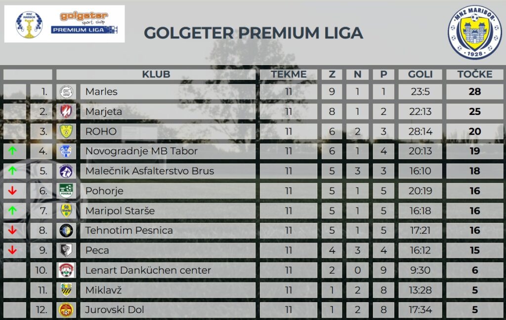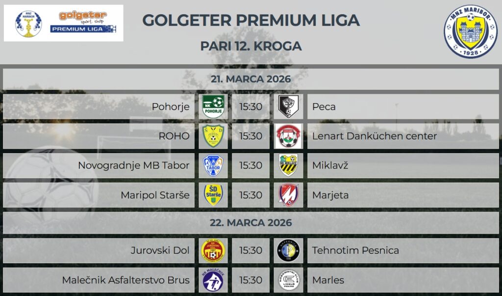 Na vrhu lestvice je Marles iz Limbuša, tik za njim Marjeta, a razlike niso neulovljive. Ekipa ROHO, Novogradnje MB Tabor in Malečnik Asfalterstvo Brus so pripravljene na spodrsljaje prvi dveh ekip in bodo hitro izkoristile ponujeno situacijo.  Spodnji del lestvice pa čaka pravi boj za obstanek, saj imamo tri ekipe, kjer bo zagotovo zelo zanimivo. Vse tri ekipe: Lenart Danküchen center, Miklavž in Jurovski dol so se maksimalno pripravile za novi start v spomladanski del prvenstva v Golgeter Premium Ligi. Vsi z velikio nestrpnostjo čakamo igranje legende mariborskega nogometa Roka Kronavetra v dresu Malečnika, ki je za sabo izjemno nogometno kariero. Vse sobotne in nedeljske tekme se začnejo ob 15.30 s prenosi v živo na www.fanmate.si