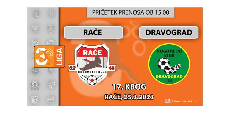Vabljeni k ogledu tekme 17. kroga v 3. SNL – vzhod med NK Rače in NK Dravograd, ki bo v soboto, 25. 3. 2023, ob 15. uri: