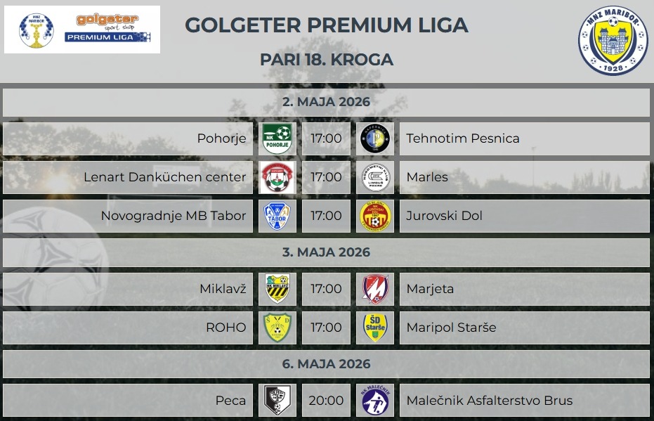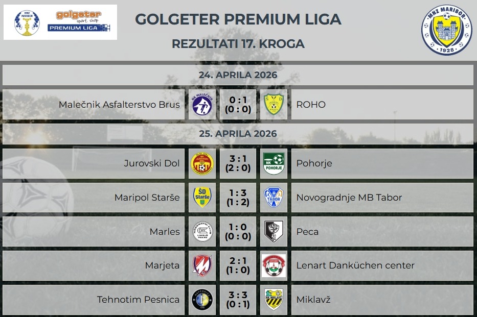 Rezultati 17. kroga v Golgeter Premium Ligi MNZ Maribor