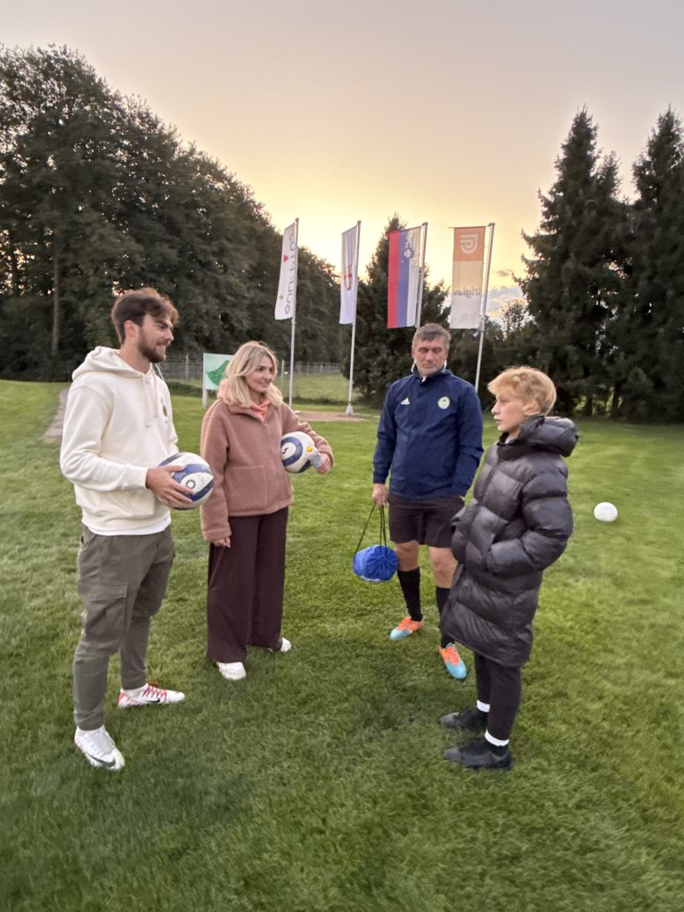 Vsaka oseba, ki smo jo srečali, je bila odprta, pripravljena na pogovor in sodelovanje. Eden najbolj simboličnih trenutkov je bila prijateljska tekma med našo delegacijo in trenerji NK Maribor. To je bila fantastična priložnost za prebijanje ledu in druženje ob univerzalnem jeziku nogometa, kar je zgradilo zaupanje in tovarištvo.