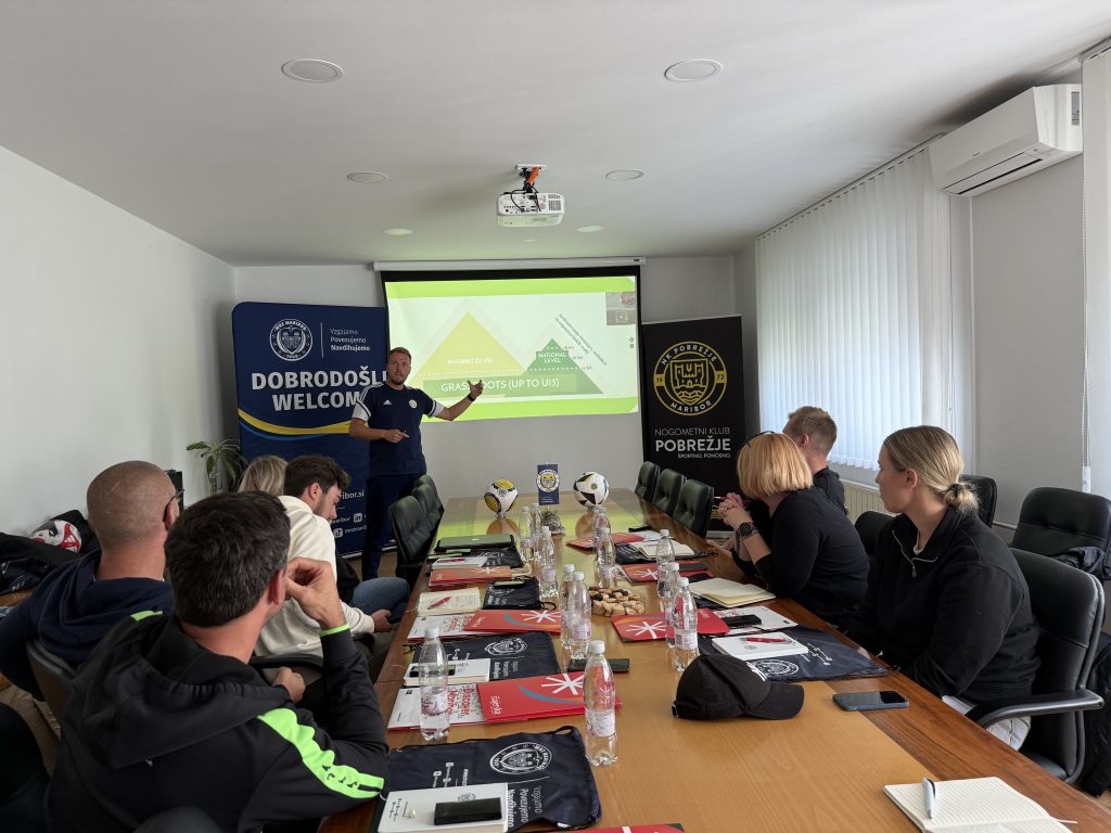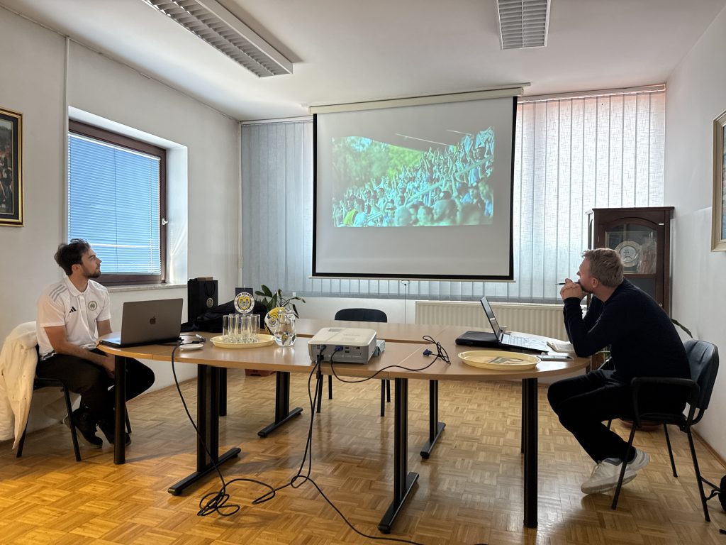 Vsaka oseba, ki smo jo srečali, je bila odprta, pripravljena na pogovor in sodelovanje. Eden najbolj simboličnih trenutkov je bila prijateljska tekma med našo delegacijo in trenerji NK Maribor. To je bila fantastična priložnost za prebijanje ledu in druženje ob univerzalnem jeziku nogometa, kar je zgradilo zaupanje in tovarištvo.