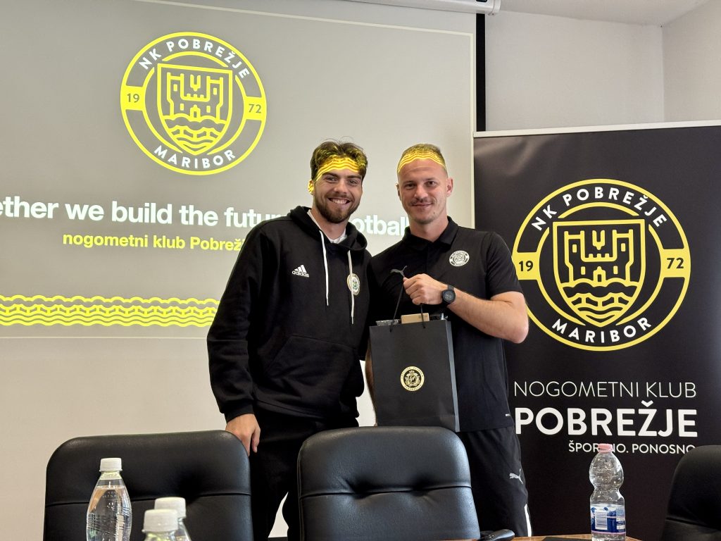 Martins je v zahvalo za sodelovanje predal darilo Marcelu Boškoviču iz NK Pobrežje.