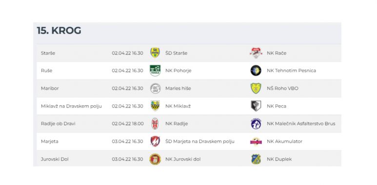 NAPOVED 15. KROGA V 1. ČLANSKI LIGI MNZ Maribor