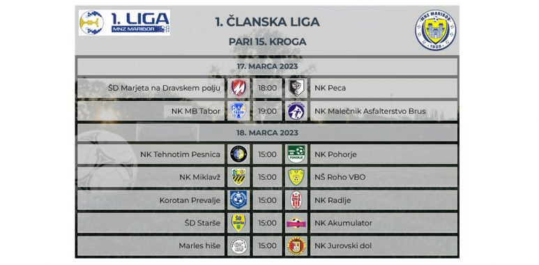 NAPOVED 15. KROGA V 1. LIGI MNZ MARIBOR
