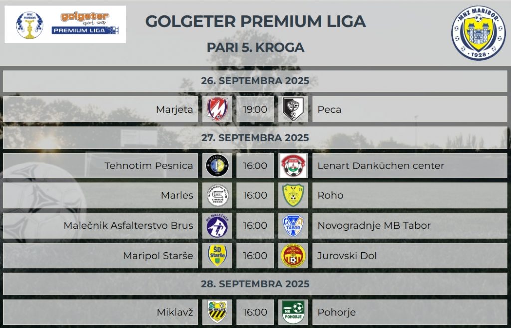 Pari 5. kroga v Golgeter Premium Ligi MNZ Maribor