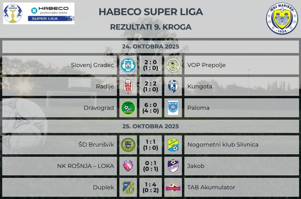Rezultati 9. kroga v Golgeter Premium Ligi in Habeco Super Ligi MNZ Maribor