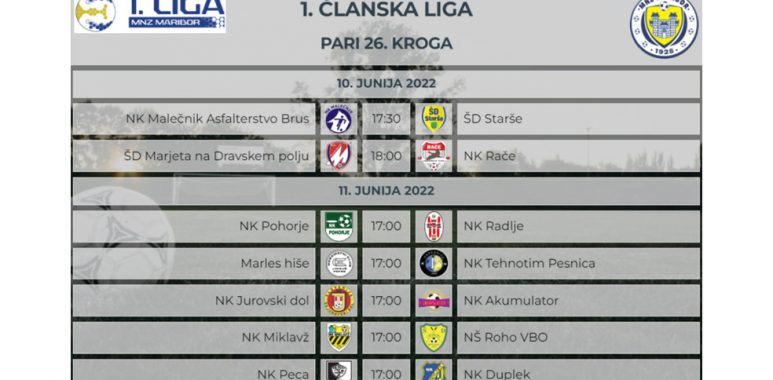 NAPOVED 26. KROGA V 1. ČLANSKI LIGI MNZ MARIBOR
