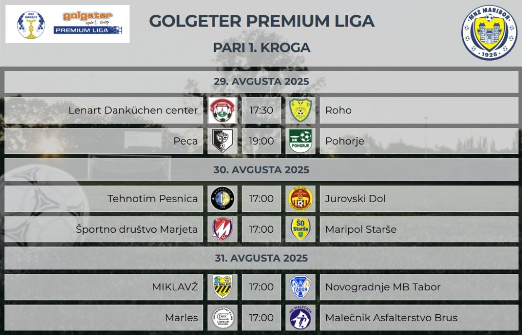 Poletni premor je za nami in vsi smo že v velikem pričakovanju nove sezone v Golgeter Premium ligi, kjer bomo imeli dve novi ekipi iz Dravskega polja. V naše tekmovanje se vrača Miklavž, ki si je priboril naslov prvaka v Habeco Super ligi in iz 3. SNL-vzhod se vrača ekipa Maripol Starše. Nogometni klub Rače pa so se po letu dni ponovno vrnile v tretjeligaško družbo. Uvodni krog bo postregel že z lokalnim derbijem med Marjeto in Staršami.